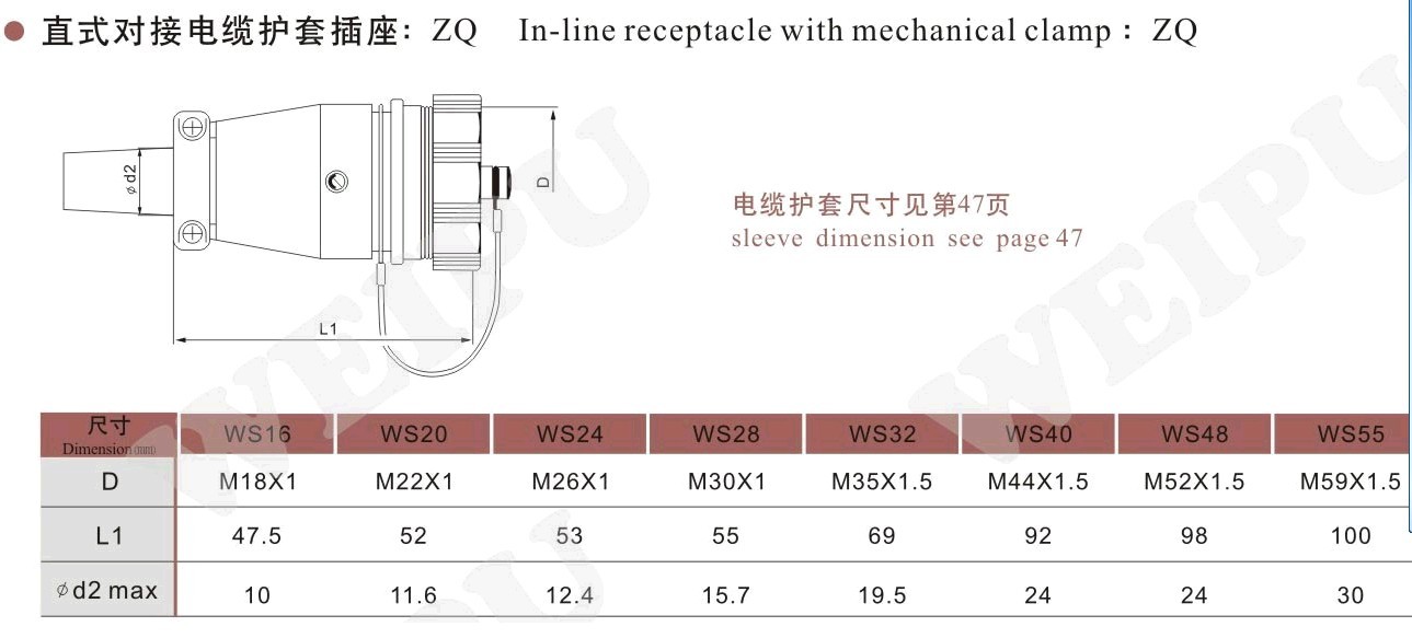 当前位置:产品中心 >> WS防尘系列(金属) >> ZQ直式电缆对接插座