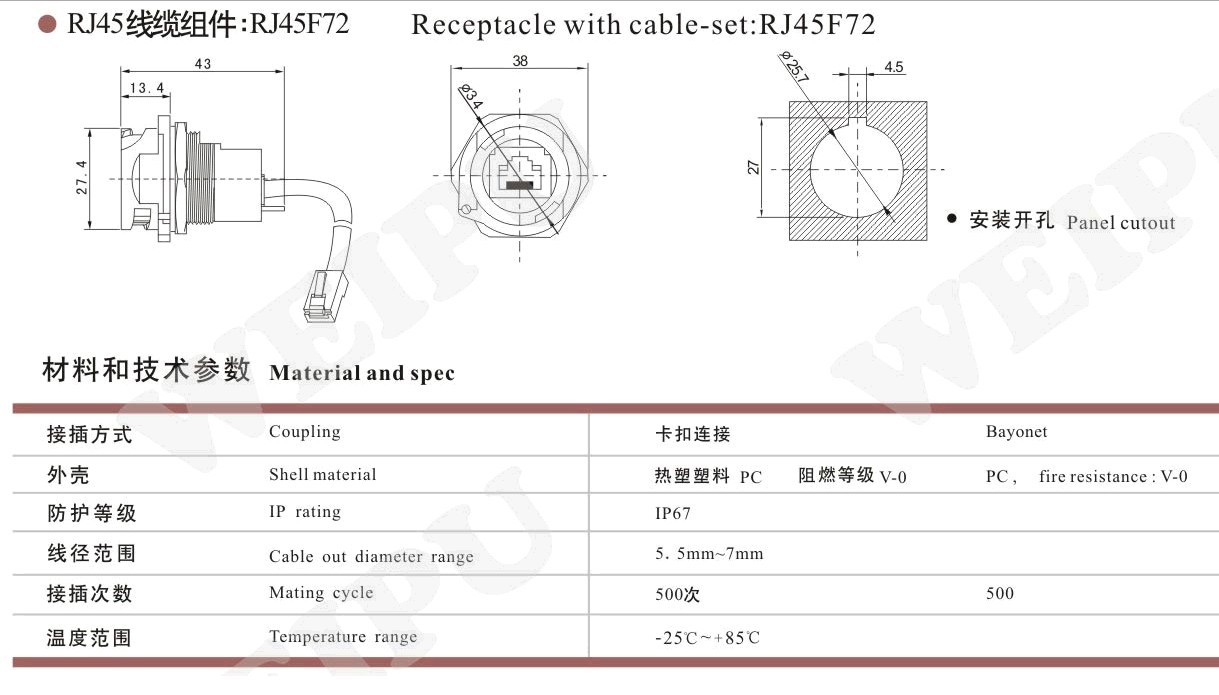 RJ45线缆组件:RJ45F72 [返回]