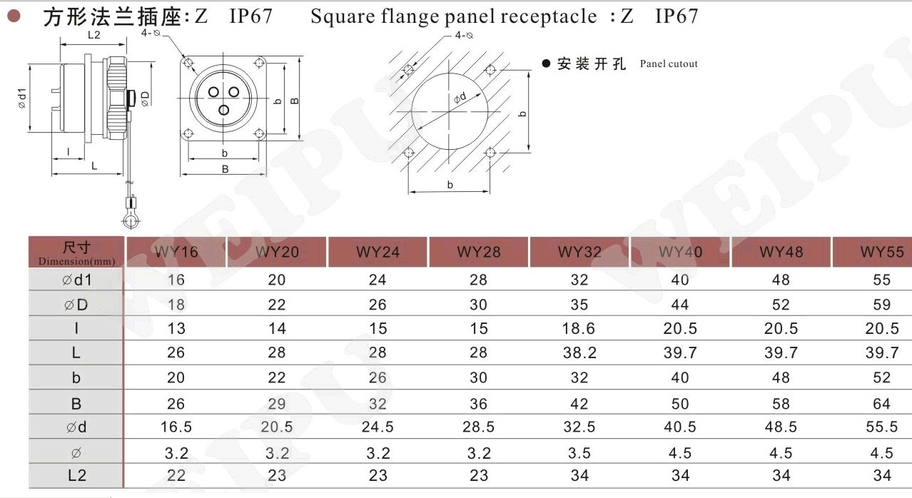 当前位置:产品中心 >> WY防水系列(金属) >> Z方形法兰固定插座.