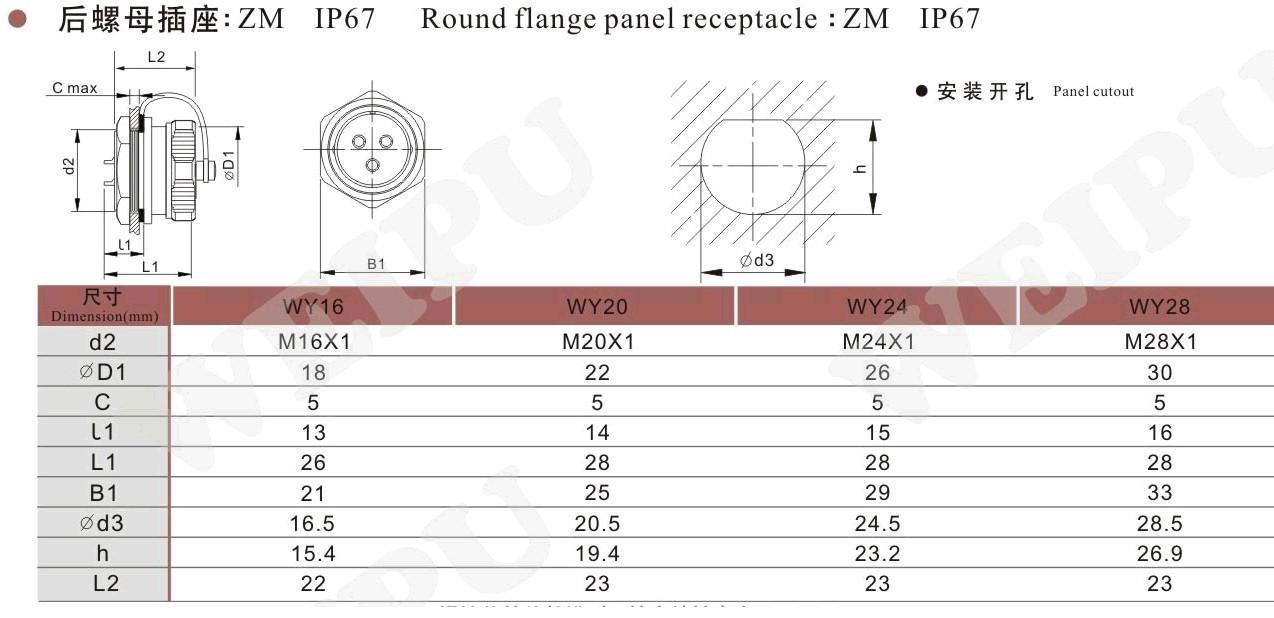 当前位置:产品中心 >> WY防水系列(金属) >> ZM后螺母插座.