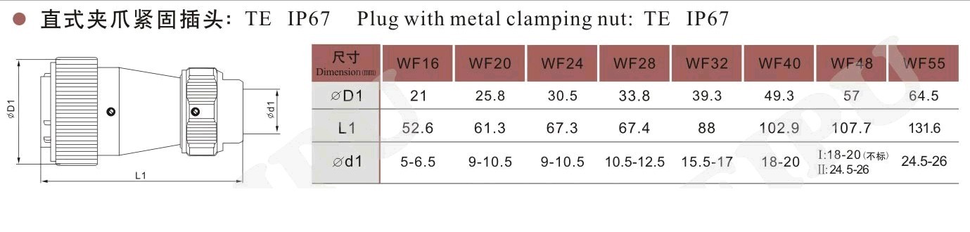 当前位置:产品中心 >> WF防水系列 >> TE直式夹爪紧固插头.